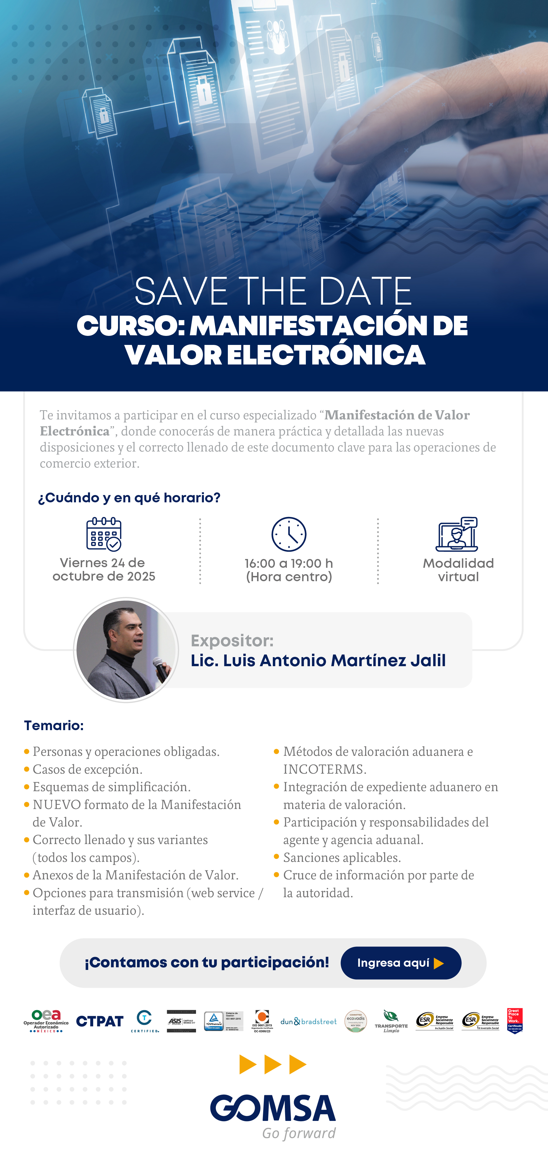 PARTICIPA EN EL CURSO “MANIFESTACIÓN DE VALOR ELECTRÓNICA” – ACTUALÍZATE EN COMERCIO EXTERIOR