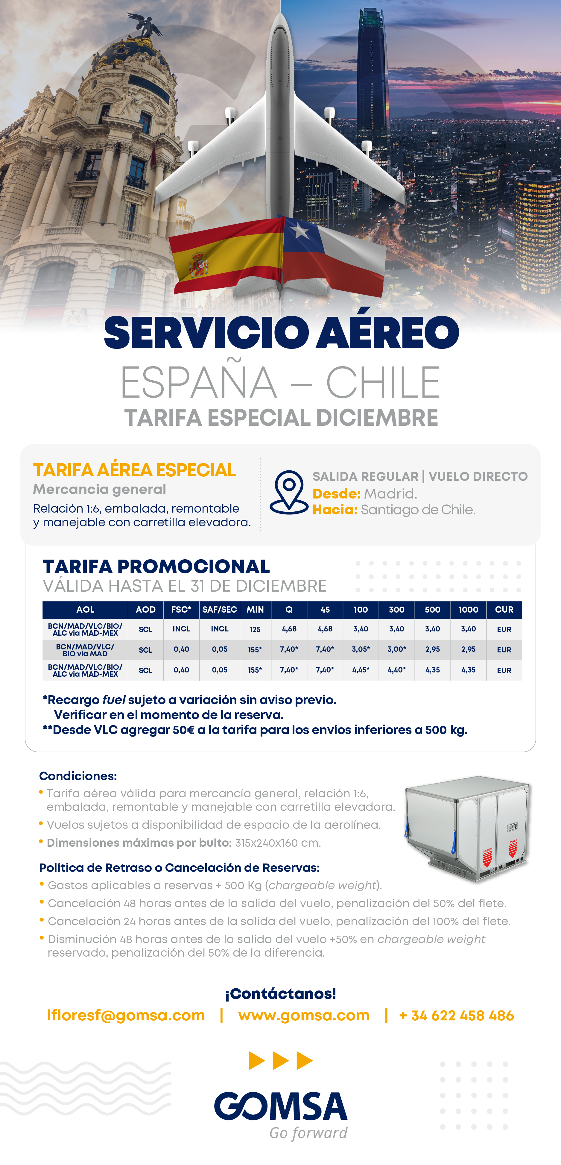 **OLO NETWORK** TARIFA AÉREA ESPECIAL ESPAÑA → CHILE TODO DICIEMBRE