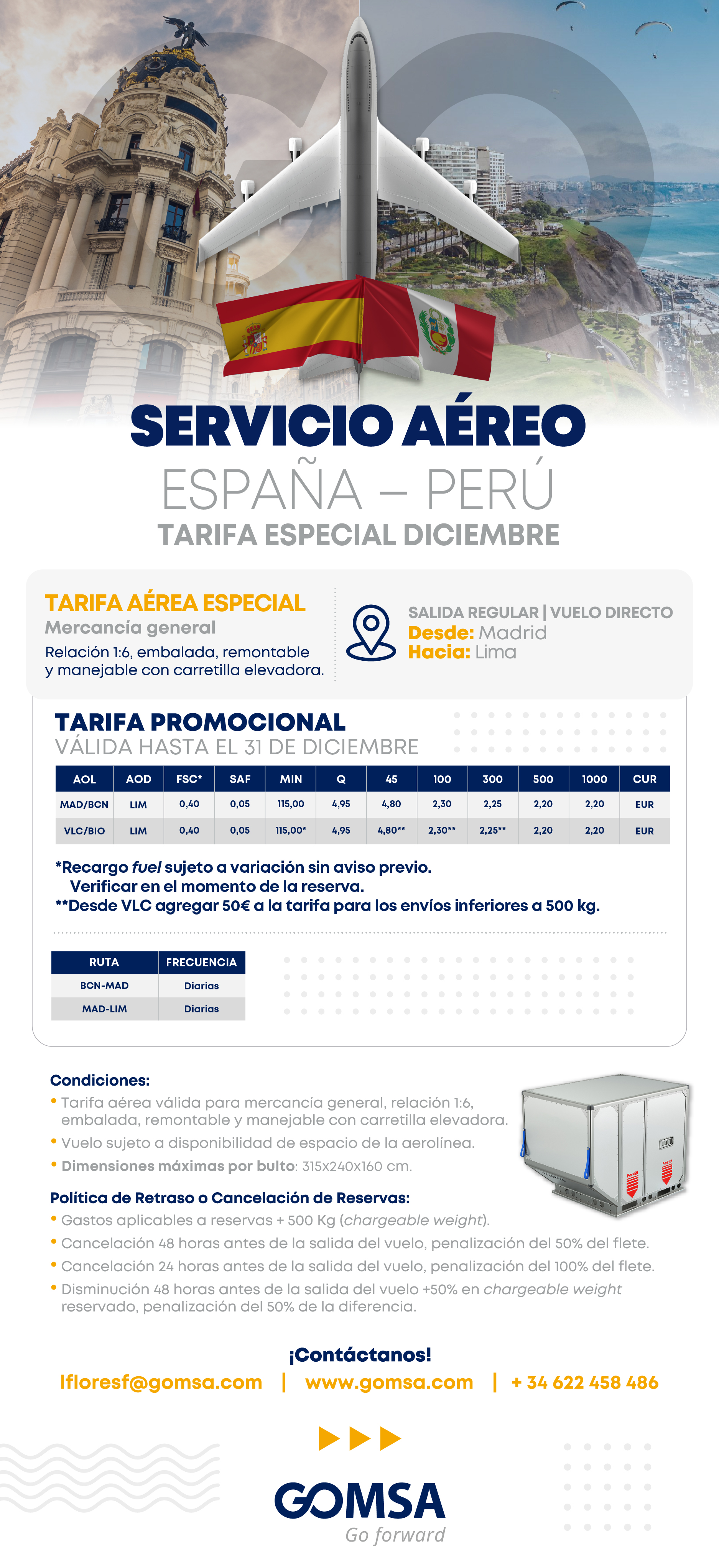 **OLO NETWORK** TARIFA AÉREA ESPECIAL ESPAÑA → PERÚ TODO DICIEMBRE