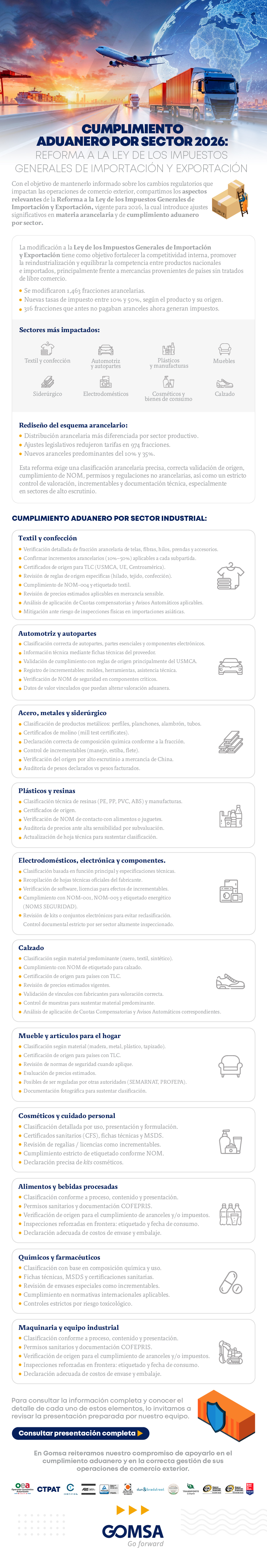 • CUMPLIMIENTO ADUANERO POR SECTOR: REFORMA A LA LIGIE