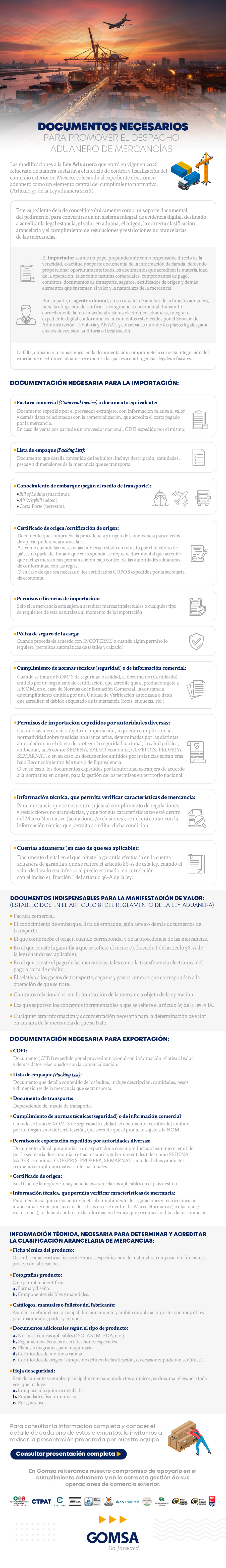 - DOCUMENTACIÓN NECESARIA PARA EL DESPACHO ADUANERO DE MERCANCÍAS