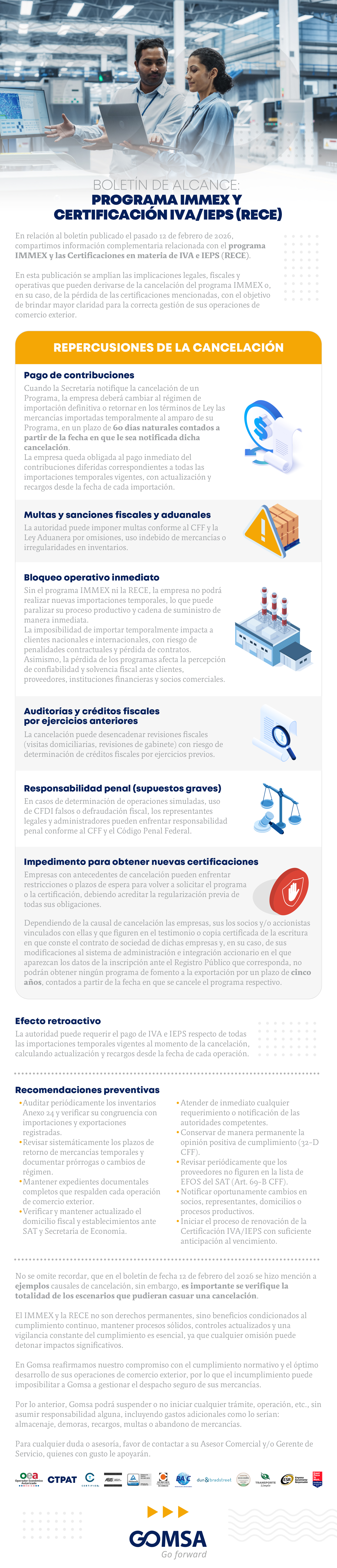 • CANCELACIÓN DE IMMEX: SANCIONES, AUDITORÍAS Y EFECTOS OPERATIVOS